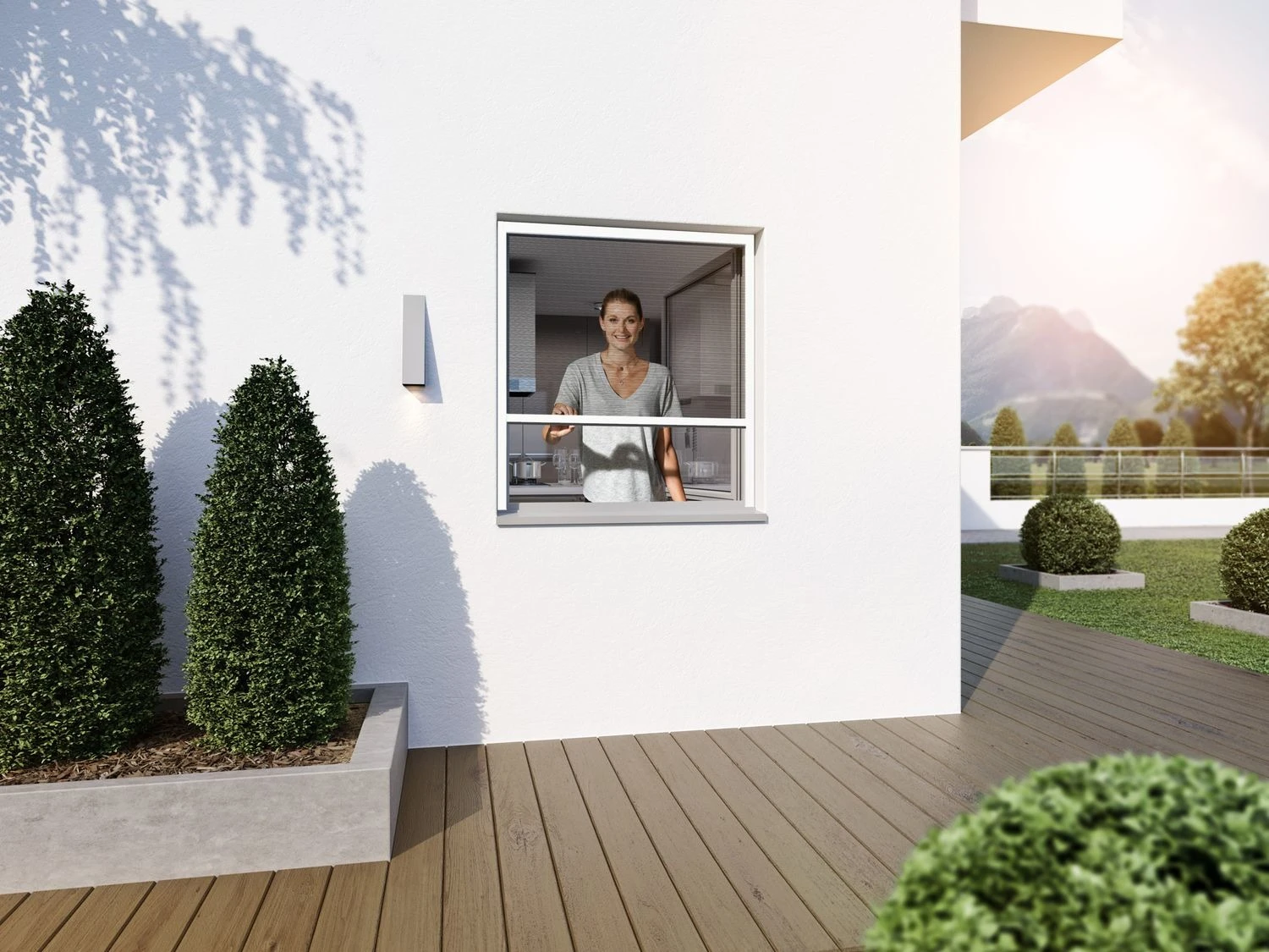 Dieses besondere Insektenschutzfenster vereint die Schlankheit eines Fliegengitterrahmens und die Flexibilität eines Rollos in einem Produkt. Das originelle Plisseefenster ist die perfekte Insektenschutzlösung für flächenversetzte Fenster. Bei flächenversetzten Fenstern ist der Fensterflügel nach innen versetzt. Dadurch entsteht außen – zwischen Blendrahmen und Fensterrahmen – eine Kante. Genau auf dieser Kante (mind. 1 cm breit) wird der Fliegengitter-Rahmen abgelegt und mit Drahtfedern eingeklemmt. Da das Plisseefenster so flach ist, steht es nur ca. 5 mm nach außen über – und passt daher auch unter einen enganliegenden Rollladen.