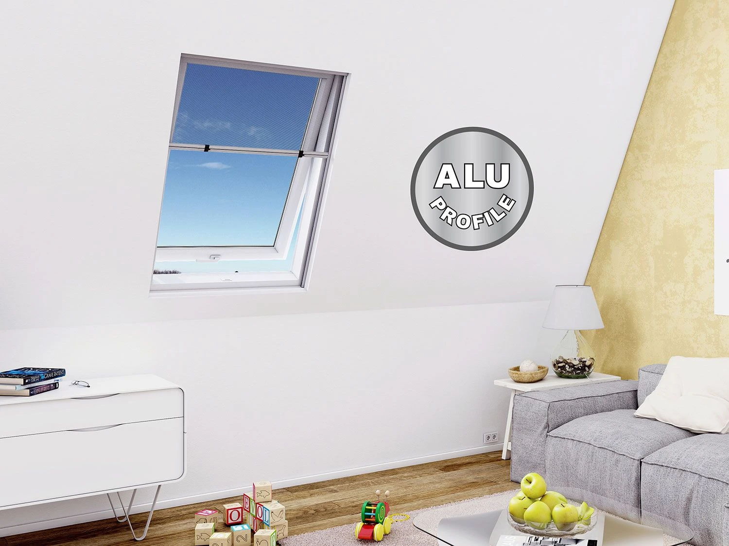 Im Komplettbausatz sind pulverbeschichtete und auf dein Fenstermaß passgenau kürzbare Aluminiumprofile, sowie ein reißfestes und UV-beständiges Fiberglasgewebe enthalten. Eine rundumlaufende Dichtungsbürste sorgt für einen lückenlosen Abschluss. Zwei Befestigungsarten – entweder einklemmen in die Laibung oder Frontalmontage auf der Wand – ermöglichen eine Anbringung bei nahezu allen Klapp- und Schwingfenstern. Die Ideallösung für viele Dachflächenfenster – endlich Lüften, ohne von lästigen Insekten gestört zu werden.